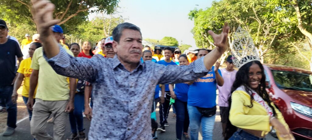 Minutos después un camión con un equipo de amplificación comenzó a encabezas el desfile, mientras que el candidato caminaba de un lugar para otro, saludando a las amas de casa y demás personas que se encontraban en las puertas de las viviendas y negocios comerciales. Todo esto lo hizo en ese recorrido, el cual culminó en la residencia de sus padres ya fallecidos, pero si con la presencia de sus hermanos en la calle Nueva, donde fue recibido con fuegos artificiales que también sonaron en todo el recorrido.