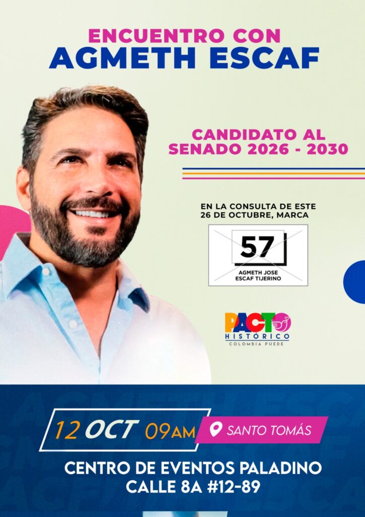 Agmeth Escaf candidato al Senado por el Pacto Histórico mañana domingo en Santo Tomas