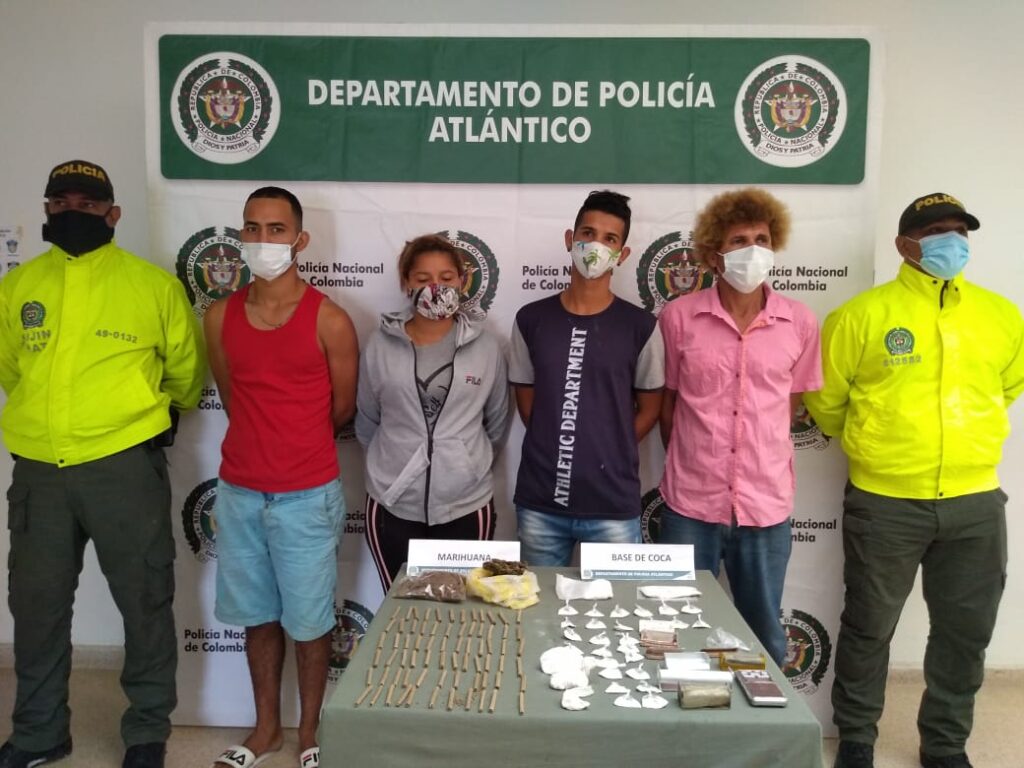 De las cuatro personas capturadas hay una mujer y el jefe de la banda. Los detenidos responden a los nombres de Shirley Sánchez, sin más datos, quien tiene una anotación contra servidor público, Marcos Badillo Pertuz, alias “El Pibe”, según la Policía jefe de la organización delincuencial y quien tiene 6 anotaciones judiciales por tráfico y porte de estupefacientes, Harrinson Arias, tiene una anotación por porte ilegal de armas de fuego y Emerson Valera Zamora, quien es de nacionalidad venezolana y no tiene anotaciones judiciales.