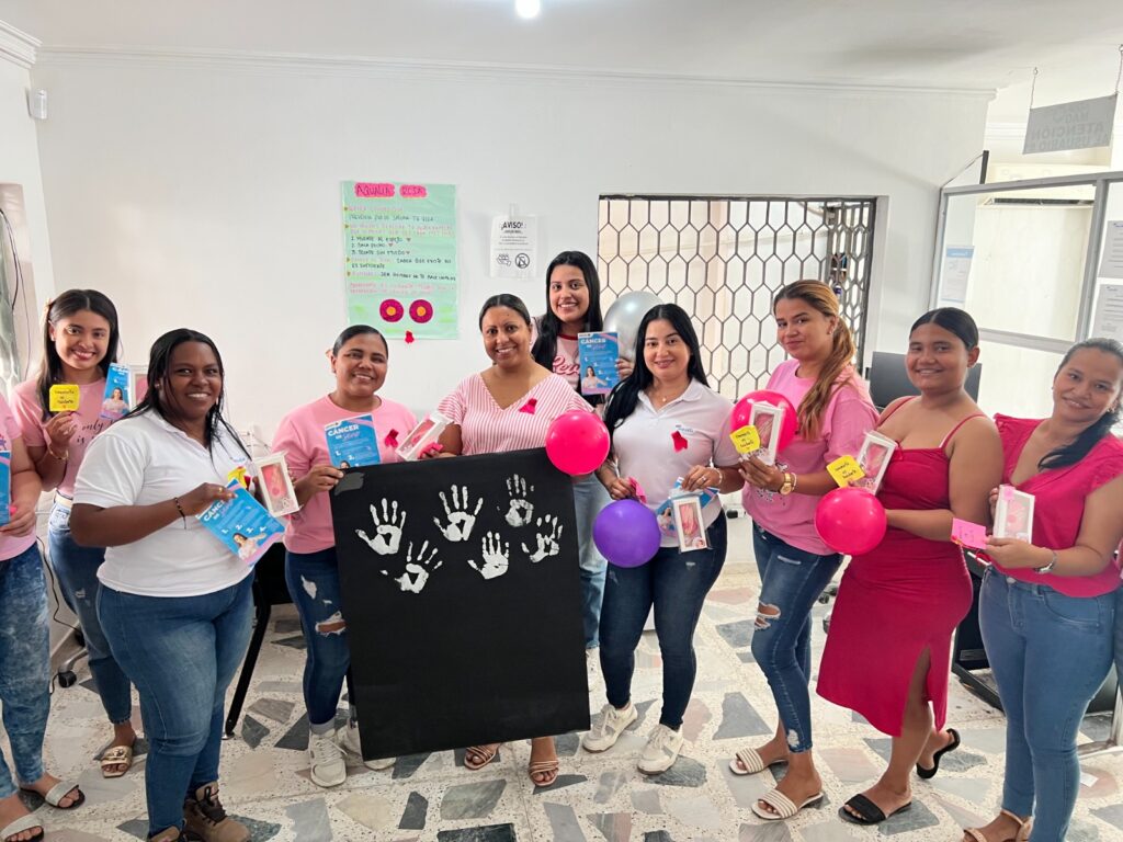 En Riohacha, las colaboradoras participaron en una charla pedagógica sobre la prevención del cáncer de mama, que incluyó una guía práctica para realizar el autoexamen mamario. La jornada se desarrolló en alianza con la Liga de Lucha contra el Cáncer y contó con la conmovedora intervención de Ofelia Fernández, sobreviviente de cáncer, quien compartió su historia de vida e inspiró a los asistentes con su mensaje de resiliencia y esperanza.