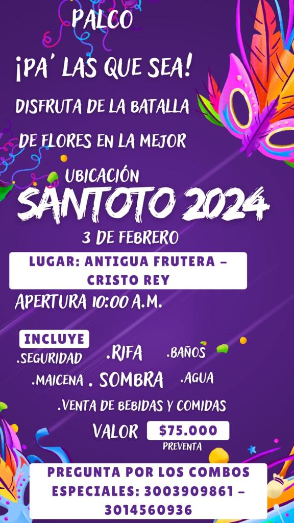 ¿Quieres ver la batalla de flores de Santo Tomás en un lugar con excelente ubicación, sombra, música, maicena, seguridad, baños y buen precio? Bueno, el palco ‘Pa las que sea’ cuenta con eso y mucho más.