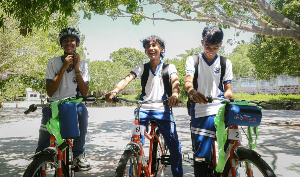 Es por esto que esta alianza entregó 187 bicicletas a igual número de estudiantes de la Institución Educativa Técnica Francisco de Paula Santader, en el municipio de Galapa. Las bicicletas son patrocinadas por ScotiaGBS, el centro de servicios de negocios globales de Scotiabank, fabricadas por World Bicycle Relief y el proceso de identificación del sector a impactar fue liderado por la Fundación Triple A.