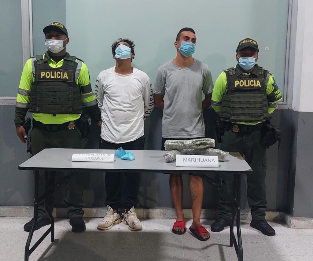 Las personas capturadas fueron identificadas como Alessio Emanuele Aduen Orano, de 35 años y nacionalidad Italiana, y José Starsky Ripoll Hernández, de 42 años, quienes fueron dejados a disposición de la Fiscalía por el delito tráfico, fabricación y porte de estupefacientes.