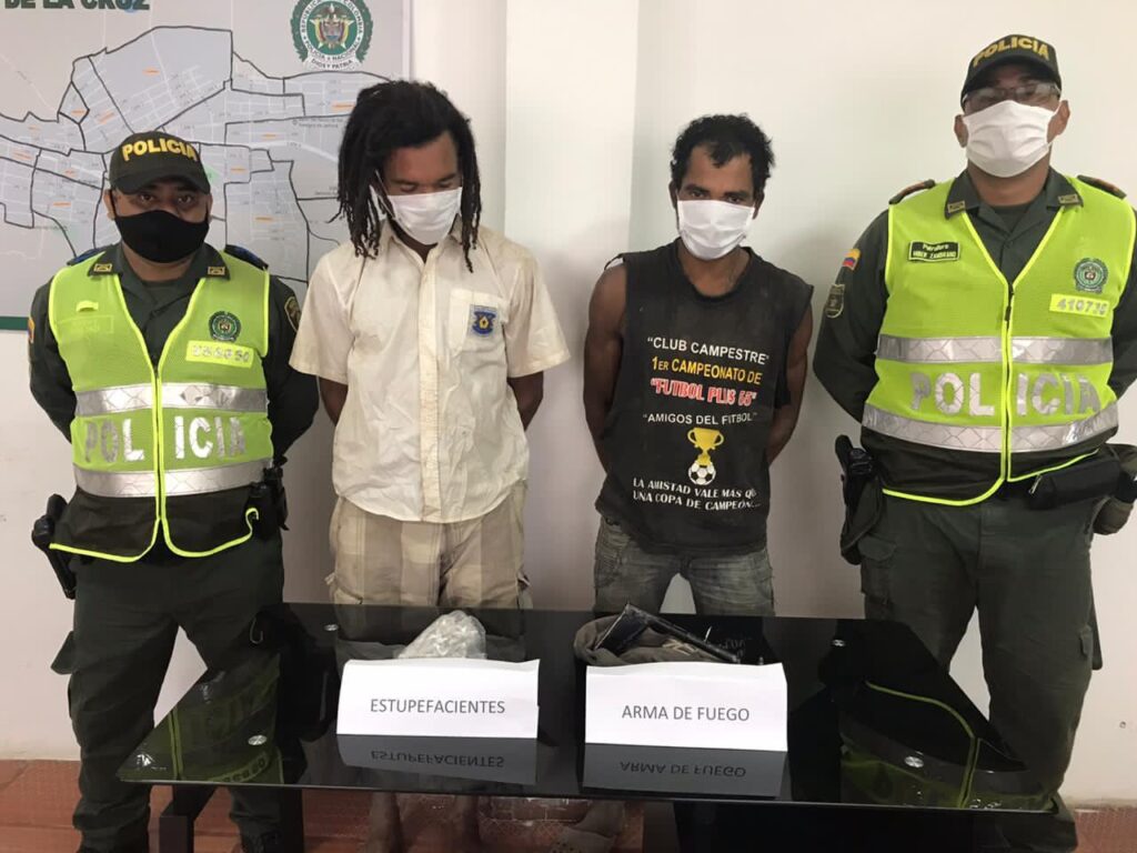 Gracias a las características entregadas por la ciudadanía, los funcionarios logran ubicar a dos sujetos quienes se movilizaban a pie, identificados como; Orlando Enrique Cantillo Villa y José Del Carmen Cantillo Villa, al momento de realizarle el registro se les halló en su poder un arma de fuego tipo artesanal, calibre 32 con un cartucho para la misma y 50 dosis de base de coca.