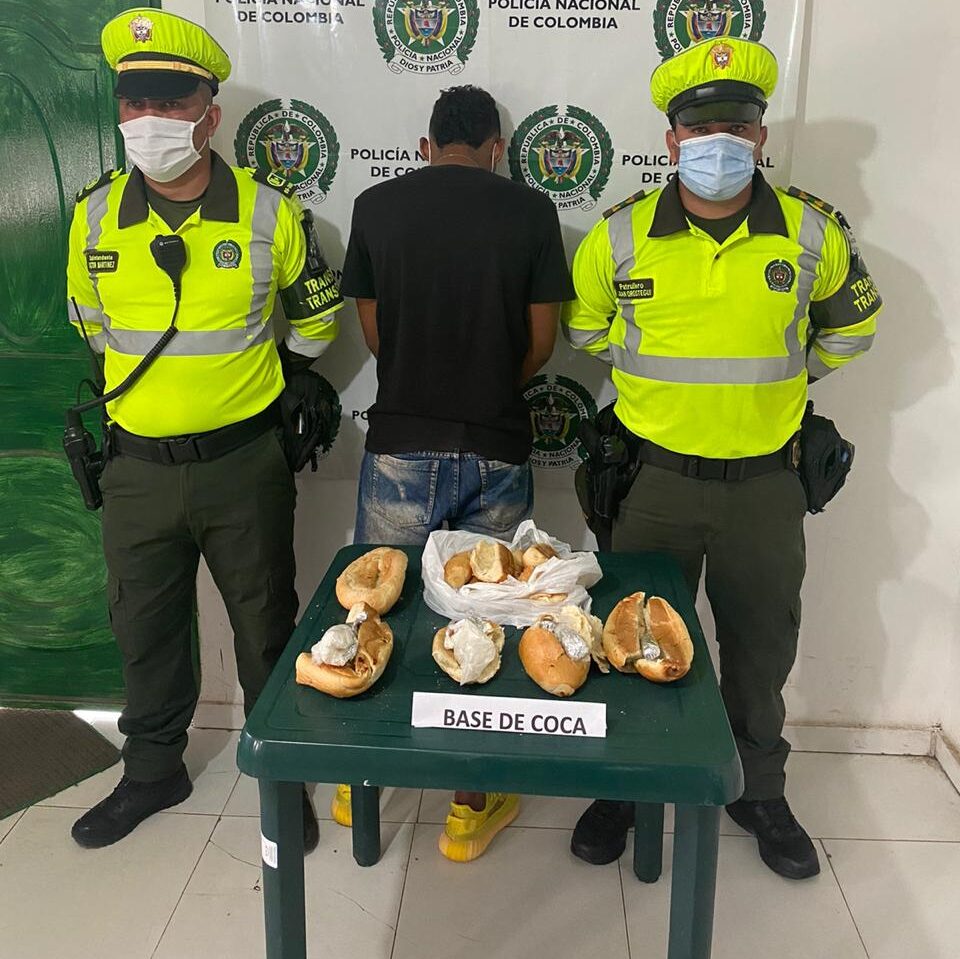 Un menor de edad fue capturado por personal de la Policía en el peaje de Sabanagrande, kilómetro 64, al ser sorprendido que llevaba una cantidad de panes, en cuyo interior tenía camuflada porciones de cocaína.