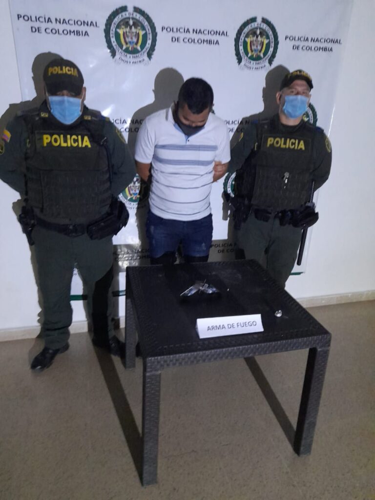 El operativo se llevó a cabo a la una de la madrugada de hoy domingo, cuando el sujeto, Alex Alberto Vengoechea Ramos con cédula de Barranquilla fue sorprendido por la unidad policial, que al pedirle una requisa le encontraron en la pretina del pantalón, lado derecho el arma de fuego.