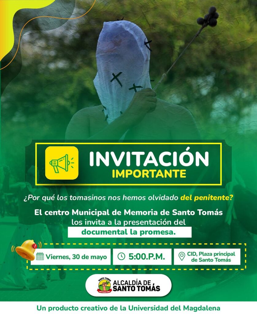 Una invitación especial está haciendo para hoy 30 de mayo el Centro Municipal de Memoria, el cual cuenta con el apoyo de la alcaldía de Santo Tomás a la presentación del documental “La Promesa”.