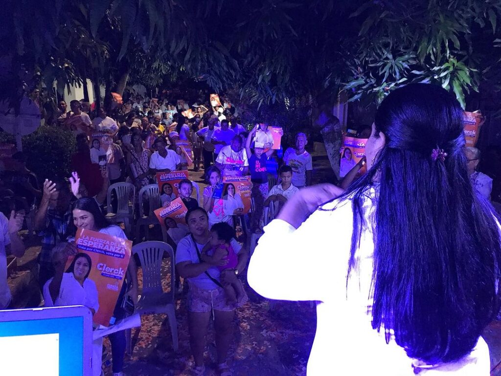 Clerck Pertuz Caballero realizó exitosamente el cierre de su campaña como candidata a la alcaldía de Santo Tomás durante la tarde del viernes en el Barrio Buena Esperanza al que asistieron centenares de seguidores, allegados y amigos.