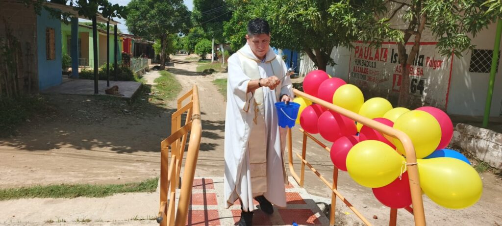 Con la bendición del sacerdote se inauguró el puente de 7 de agosto, sector de Los Patos en Santo Tomás