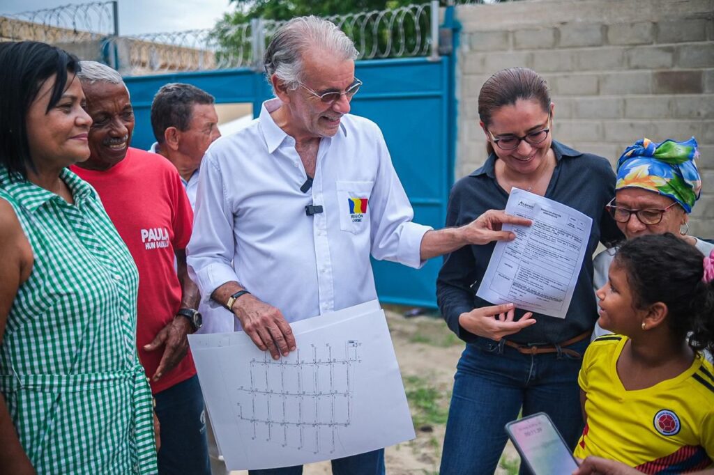 Santo Tomás, Atlántico, 27 de mayo de 2024. Garantizar el saneamiento y mejorar las condiciones de vida de los 1.821 habitantes de La Arenosa, Santo Tomás, es la prioridad del gobernador del Atlántico, Eduardo Verano de la Rosa, ya que se eliminaría el vertimiento de aguas residuales por las vías del sector y obtener una mejor cobertura de la población. Anunció, además, que los trabajos de la construcción de redes de alcantarillado avanzan en 88 %.