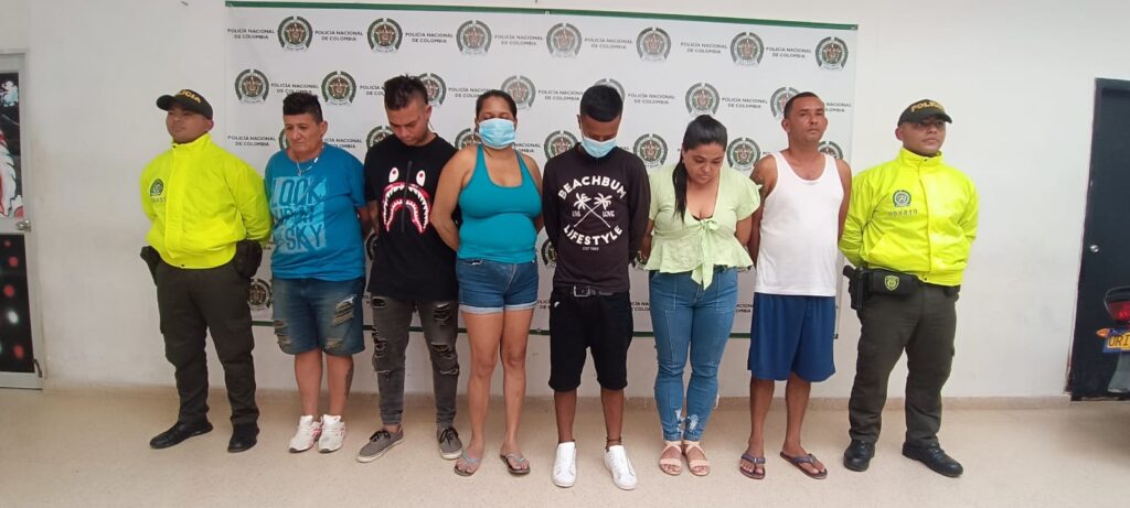Los capturados fueron identificados como: Deivis Antonio Rivas Ospino; Ana María Martínez, alias ‘La Bruja’; Loren Laid Lanza Caro, indiciada por el delito de lesiones personales; Greicy Celena Lanza Caro, alias ‘Celene’; Adrian Enrique Padilla Barrios, alias ‘El Chino’, indiciado por tráfico, fabricación o porte de estupefacientes, en el año 2018 y 2020 y Carlos Ricardo Lanza Caro, alias Carlitos Lanza, indiciado fabricación, tráfico y porte de armas de fuego o municiones 2018, indiciado lesiones 2020.