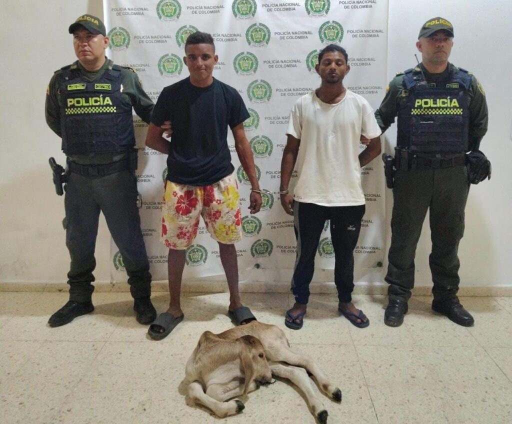 En esta acción contundente se logra la captura en flagrancia de estas personas por ser los presuntos responsables del delito de abigeato, donde, se logra interceptar dos individuos en la calle 1 con carrera 10, vía pública, los cuales, momentos antes habrían hurtado un ternero recién nacido en una finca del sector.