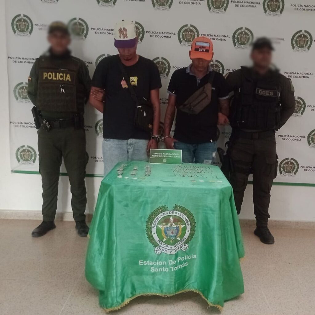 Durante los operativos contra el crimen que desarrolla la Policía Nacional en Santo Tomás fueron capturados dos sujetos por los delitos de tráfico, fabricación o porte de estupefacientes. Los aprendidos responden al nombre de José David Puentes Mercado y Carlos Antonio González Salcedo.