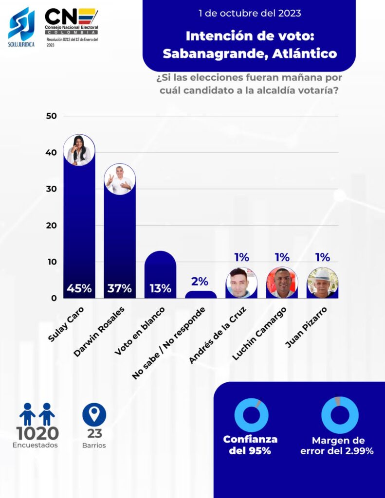Elecciones en Sabanagrande: Sulay Caro lidera con el 45%, revela encuesta de Solujuridica