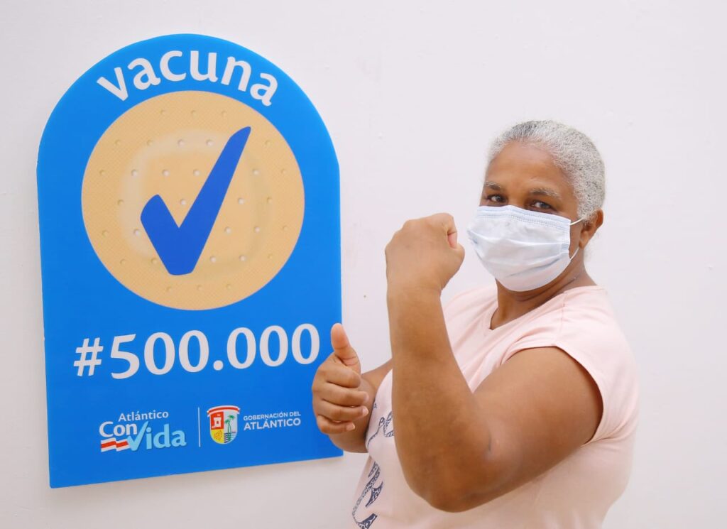 En el quinto mes de avance del Plan Nacional de Vacunación contra el Covid-19, el departamento del Atlántico aplicó la vacuna 500 mil a Isela Ardila Herazo, quien recibió su primera dosis en el punto masivo de la Casa de Cultura del municipio de Galapa.