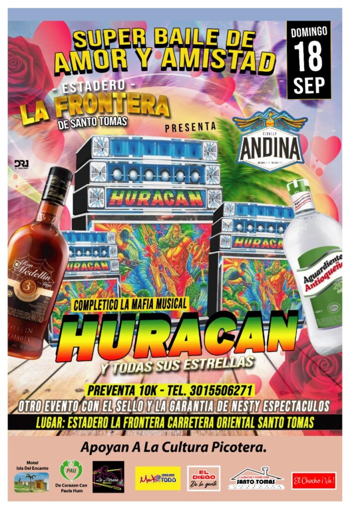 Un super baile de Amor y Amistas se realizará este domingo 18 de septiembre en el sitio más importante de Santo Tomás como es La Frontera, ubicada sobre la carretera Oriental en vía a Palmar de Varela, el cual estará amenizado por el potente pick-up El Huracán de Barranquilla.