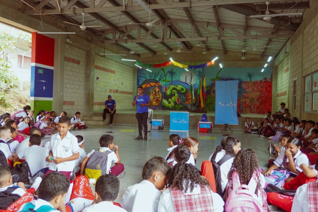 Piojó, marzo 20 de 2025. En el marco de la conmemoración del Día Mundial del Agua, Triple A dio inicio a las actividades educativas que realizará en distintos municipios del departamento del Atlántico y sectores de la ciudad de Barranquilla, con su primera jornada en Piojó. El encuentro se llevó a cabo en la Institución Educativa Ecoturística de este municipio, donde más de 300 estudiantes y sus docentes participaron en dinámicas lúdicas y conferencias interactivas para aprender sobre el uso eficiente del agua y su proceso de distribución.