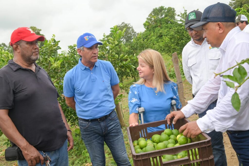 La Gobernadora del Atlántico participó este martes en la recolección de la cosecha de limón tahití en el predio del productor Luis Carrillo, en zona rural de Repelón.