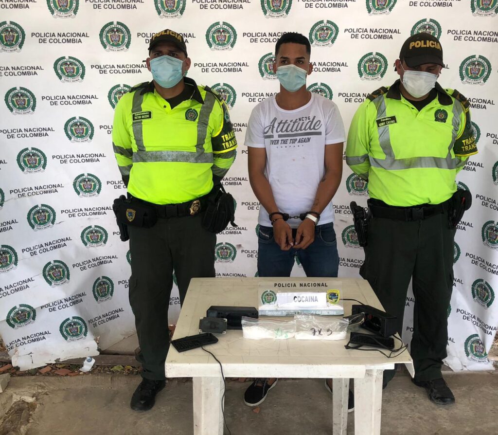 Los uniformados realizaron la incautación de la sustancia, el capturado fue identificado como Cristián Vásquez Beltrán, de nacionalidad venezolana, de 21 años de edad, quien fue puesto a disposición de la Fiscalía por el delito de tráfico fabricación o porte de estupefacientes.