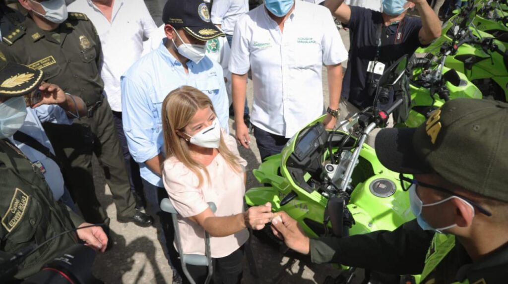 “La seguridad ciudadana y la convivencia no es solo asunto de la Policía, sabemos que se requiere del trabajo en equipo y muchas otras acciones que permitan devolverles la tranquilidad a nuestros ciudadanos. Por eso cuando la Policía nos dice que necesitan equipos de comunicación, de transporte e infraestructura, nosotros no escatimamos esfuerzos porque sabemos que tenemos que concurrir con esas inversiones que requieren para que tengan una mayor y mejor capacidad operativa, de reacción y ejercer mucho mejor el control y la vigilancia”, dijo la Gobernadora del Atlántico durante la entrega de las motocicletas.
