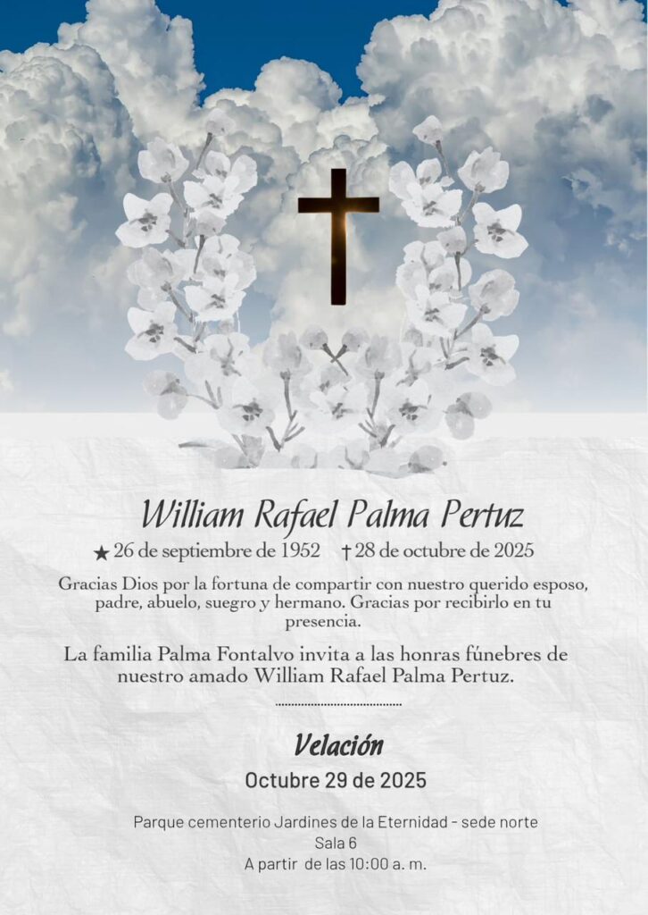 Atlántico Santo Tomás Falleció en Barranquilla el comerciante William Palma Pertuz natural de Santo Tomas 1 mes ago Manuel Perez Fruto El día de ayer 28 de Octubre falleció en la Clínica del Caribe el Sr William Rafael Palma Pertuz,Su esposa, hijos, hermanos y nietos agradecen las manifestaciones de aprecio y cariño recibidas en este sensible momento para la familia. Tags: Atlántico, Barranquilla, Gobernación, Gobernación del Atlántico, Municipios del Atlántico, Palmar de Varela, sabanagrande, Santo Tomás Continue Reading Previous En Santo Tomás hay predios enmontados y con animales peligrosos y la Inspección de Policía no hace nadaNext Falleció médico sabanagrandero que trabajaba en hospital de Santo Tomas Más Noticias Atlántico Santo Tomás Camilo Torres Villalba renuncia a la Asamblea del Atlántico y reafirma su aspiración al Senado de la República 1 hora ago Manuel Perez Fruto Atlántico Santo Tomás ARRANCAMOS EL CAMINO PARA TRABAJAR EN BENEFICIO DE LA NACIÓN Y DE MI PUEBLO AFROCOLOMBIANO. 2 horas ago Manuel Perez Fruto Atlántico Santo Tomás Hoy está cumpliendo años Celia Judith Fontalvo Herrera en Santo Tomás 1 día ago Manuel Perez Fruto Atlántico Santo Tomás Rania Angarita Escorcia lidera jornada de pintura y embellecimiento en el barrio 20 de Julio 2 días ago Manuel Perez Fruto Atlántico Santo Tomás Gran asado familiar en la terraza de Margge en la calle Independencia 2 días ago Manuel Perez Fruto Atlántico Santo Tomás Merecida condecoración al presidente y gerente de los Hermanos de la Caridad, Cementerio Universal 2 días ago Manuel Perez Fruto Deja un comentario Cancelar respuestaTu dirección de correo electrónico no será publicada. Los campos obligatorios están marcados con *Comentario * Nombre * Correo electrónico * Web Guardar mi nombre, correo electrónico y sitio web en este navegador para la próxima vez que haga un comentario.
