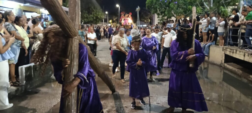 La noche de este miércoles fue la procesiòn de Jesùs carga la cruz y la escena de las tres caídas, cuyo desfile se inició pasadas las 8 de la noche y culminò pasadas las 11,