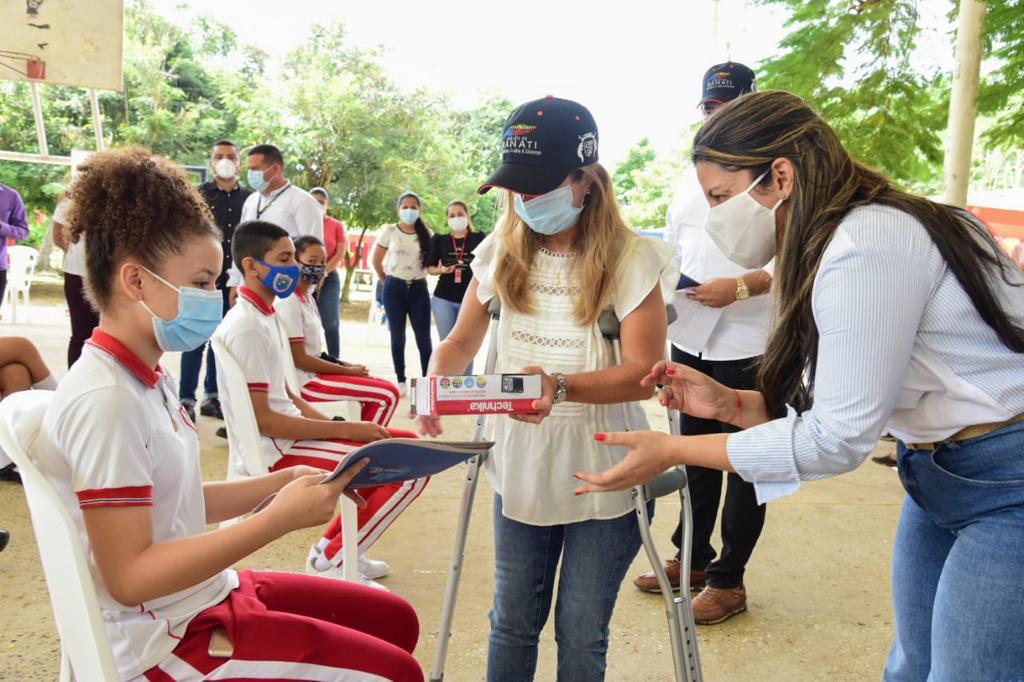 Durante una charla motivacional dirigida a estudiantes, docentes y padres de familia, la mandataria destacó el gran trabajo en equipo con cada comunidad educativas de los colegios y reiteró que desde el primer día de su gobierno se ha trabajado sin descanso por mejorar la calidad de la educación en el departamento.