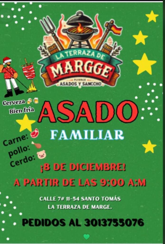 Un gran asado con carnes, pollos y cerdo, al igual que venta de cerveza se ha organizado para este 8 de diciembre en la calle 7, calle la Independencia entre las carreras 11 y 12, familia Pérez Pérez-