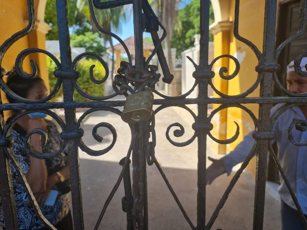 A los pocos minutos, la señora Carlota llegó a la puerta para salir, pero se encontró con la sorpresa que esta estaba cerrada, por lo que solicitó ayuda a unas personas que estaban en la puerta de afuera.