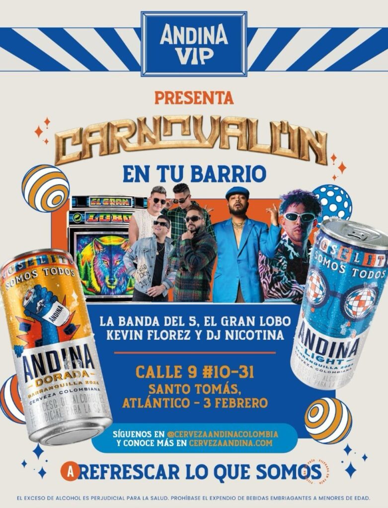 - Los ‘Carnavalones al Barrio’ son la muestra del compromiso de Andina VIP por acercar las mejores experiencias musicales a los colombianos, llevando estos conciertos a las comunidades de Soledad y Santo Tomás.