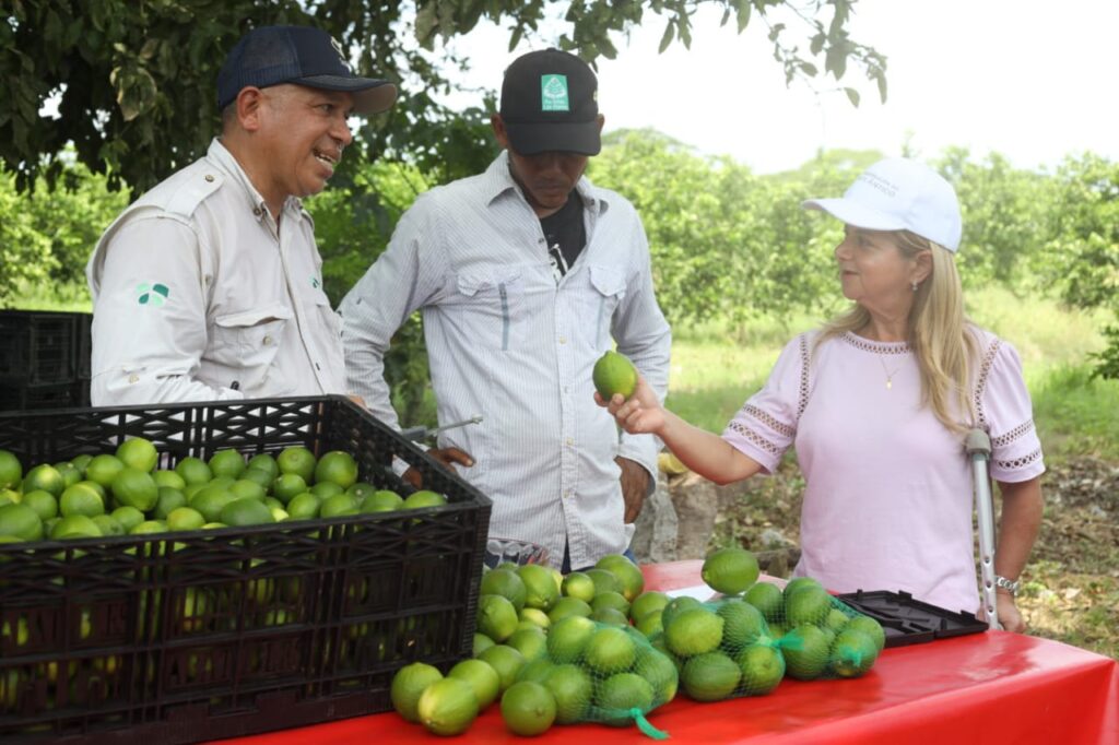 La Gobernadora del Atlántico visitó este martes el cultivo del nuevo empresario del campo Edwin Pernett, para acompañarle en la recolección de la primera cosecha de limón Tahití del proyecto de agroindustria en Repelón.