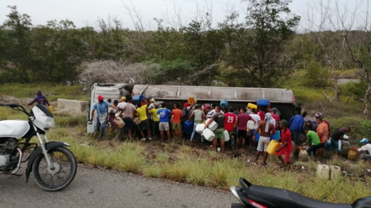 También informaron que inmediatamente enviaron una ambulancia al lugar de los hechos para atender la situación del vehículo volcado, pero fueron detenidos por personas del sector que llegaron en motocicleta y caminando a sacar la gasolina del camión.