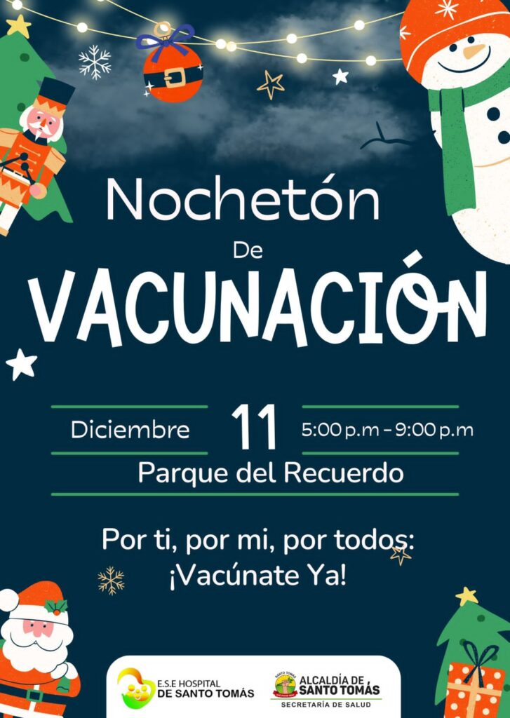 El Hospital de Santo Tomás y la Secretaría de Salud Municipal te invitan a participar en esta Gran Nochetón de Vacunación en pro de la salud para todas las familias.