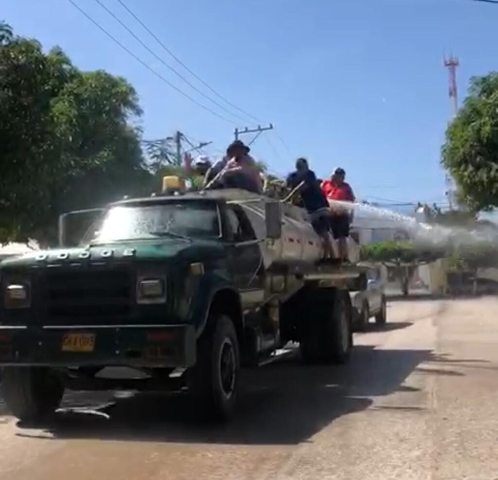Pasadas las dos de la tarde hizo presencia en algunas calles y el boulevard un carro tanque con 30 mil litros de agua y desde una fuerte manguera emanaba el líquido hacía la gente que la recibían con beneplácito. Esta donación la hizo el exalcalde Luis Alberto Escorcia Castro en colaboración con otras personas, entre las que se destacan Mañe Angarita, Bladimir Escorcia, Raúl Heredia Gutiérrez y Diego Escorcia Bolaños, uno de los aspirantes a la alcaldía de este municipio.