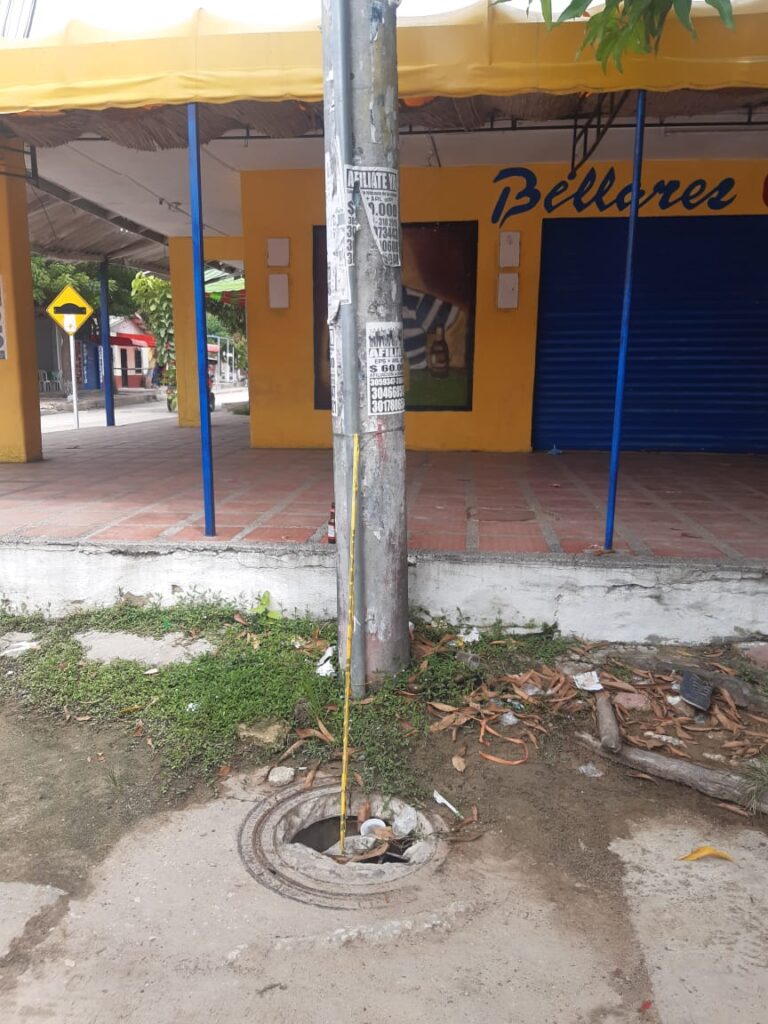 Esta alcantarilla se encuentra ubicada en la calle 6 con la carrera 11, la famosa esquina de “Chichi”, a la cual parece o se destruyó con el tiempo la tapa del mismo, quedando un hueco profundo donde cualquier persona podría caer y lesionarse gravemente.