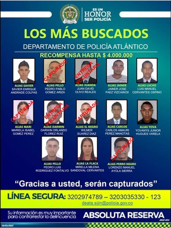 Esta persona se encontraba entre los más buscados del Atlántico, donde las autoridades ofrecían hasta 4 millones de pesos por información que permitiera capturarlo.