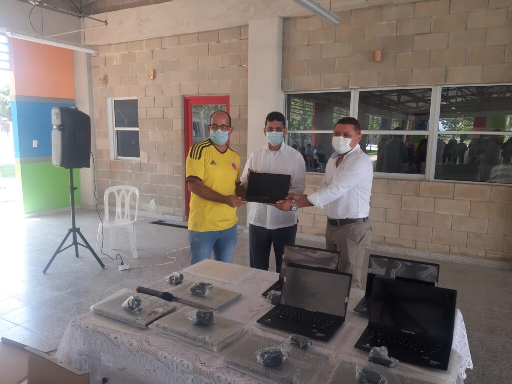 El viernes en horas de la mañana con la presencia del alcalde Tomás Guardiola Sarmiento y el rector Rafael Manga se recibieron 280 computadores portátiles para el centro educativo.