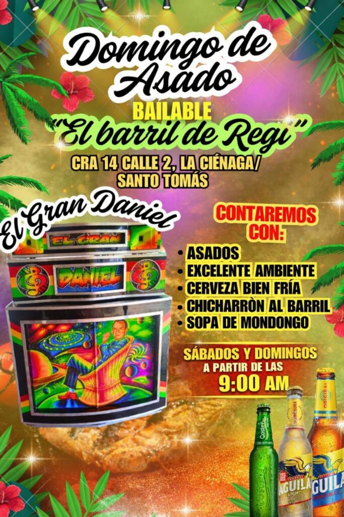 Sábados y domingos asados al barril, juegos en el estadero de la calle la Ciénaga con la carrera 14 de Santo Tomás