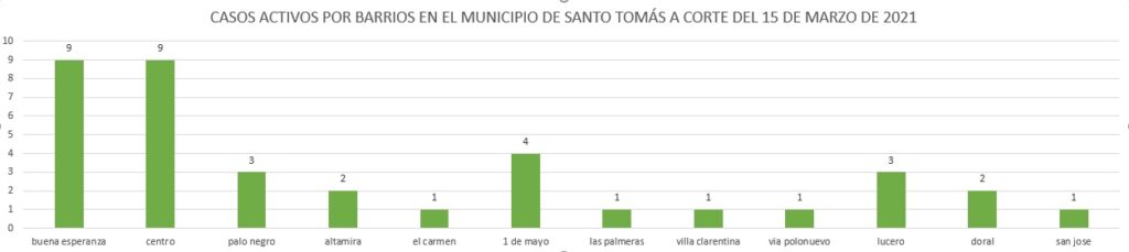 Santo Tomás, de acuerdo al informe entregado en la mañana de hoy por la Secretaria de Salud Municipal, Lizbeth Robles Cervantes y con corte al 15 de marzo tiene un total de 37 casos activos de Covid-19, más los que aparecen en el informe del 16 que son 2 y el 17 del mismo mes 3, tendría un gran total de 42 contagiados por esta terrible enfermedad, bastante preocupante tanto para las autoridades como la comunidad en general que debe de adoptar responsabilidades con las medidas de bioseguridad.