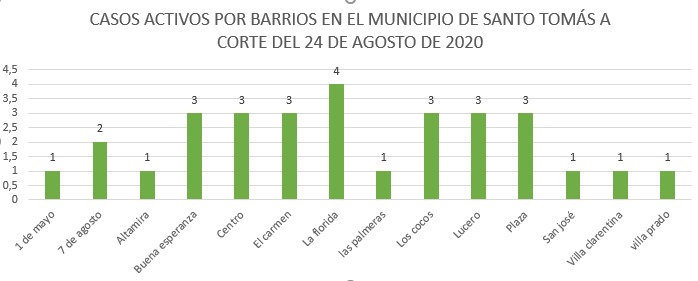 Los resultados de COVID-19 en Santo Tomás son alentadores debido a una considerable baja de los contagios, lo que demuestra que la Administración Municipal, en cabeza del alcalde Tomás Guardiola Sarmiento, y la Secretaria de Salud Municipal, Lizbeth Robles, vienen trabajando arduamente en el cuidado de los habitantes tomasinos y de esta manera combatir la epidemia.