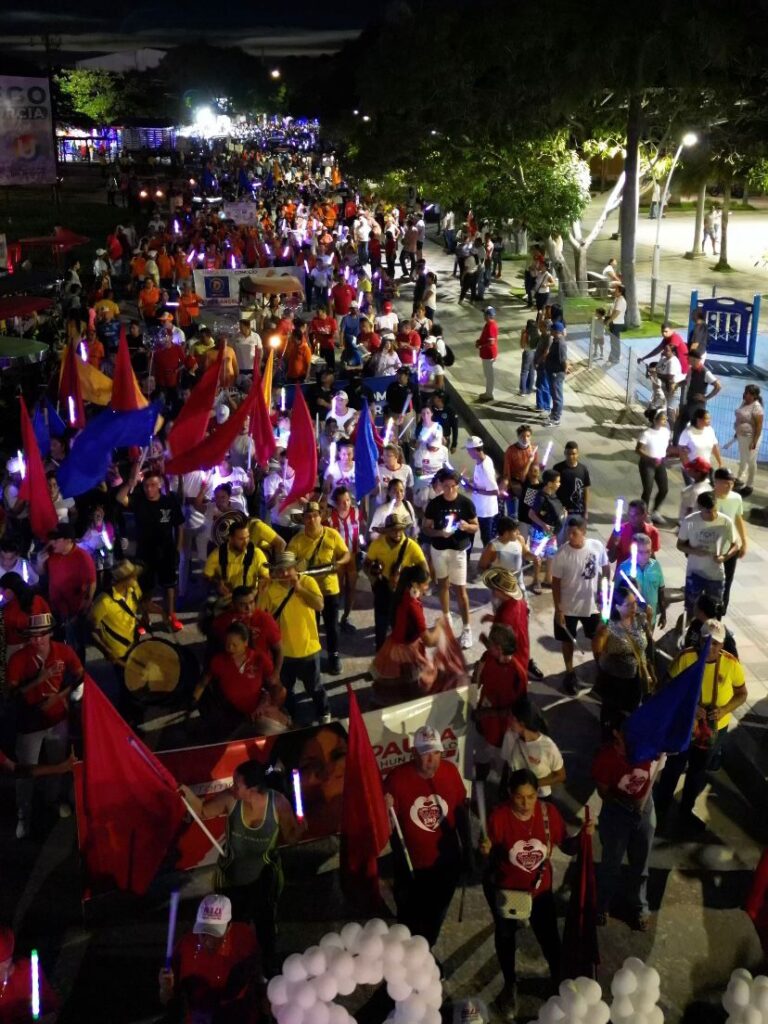 Este sábado una gran multitud acompañó a la candidata Paula Hun Badillo durante su cierre de campaña. En medio de música, danzas y luces de colores, los seguidores de Paula caminaron desde el parque El Recuerdo hasta el parque El Lucero, lugar en el que se dispuso una tarima para que ‘Pau’ como cariñosamente le llaman, se dirigiera al público.