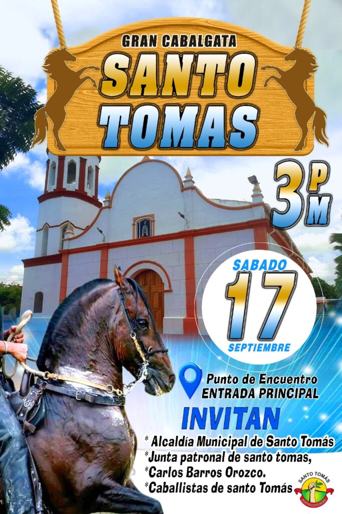 Otro de los eventos tradicionales y que se va a revivir en esta fiesta patronal es la famosa Cabalgata, la cual está programada para el mismo sábado 17 de septiembre a las 3 de la tarde por las calles tomasinas. Están invitados todos los caballistas del departamento del Atlántico y la Costa Atlántica. Habrá buena atención por parte de la Alcaldía municipal y la Junta Patronal. En este evento está colaborando el joven caballista Carlos Barros Orozco.