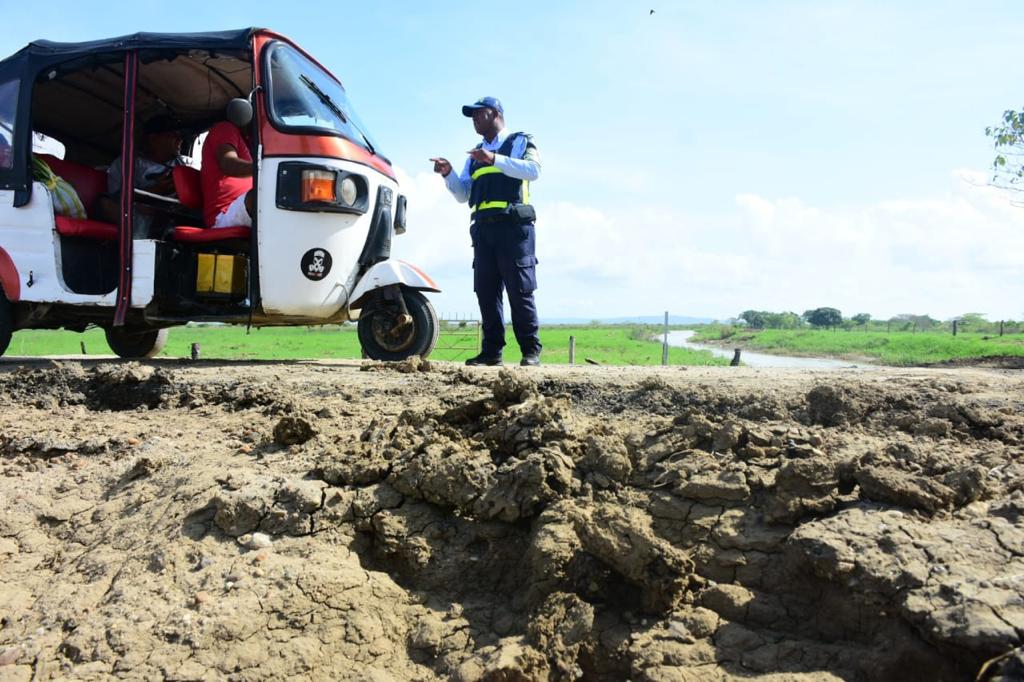 Nueve agentes y 50 promotores viales cubren 500 kilómetros de vías secundarias afectadas en el departamento, para garantizar la seguridad vial en medio de la ola invernal.