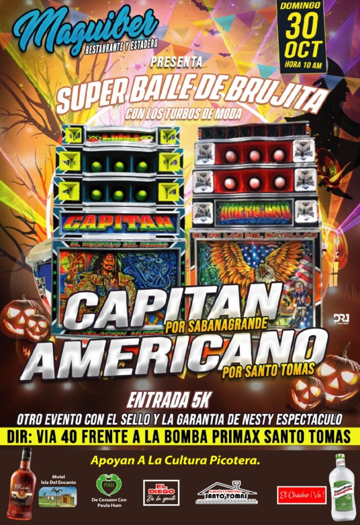 Nesty Espectáculos es el programador de esta gran fiesta de brujas en la fecha antes mencionada y desde las 10 de la mañana, manifestando que los turbos que se presentarán son: “El Gran Americano” de Santo Tomás y por Sabanagrande, “El Capitán”.