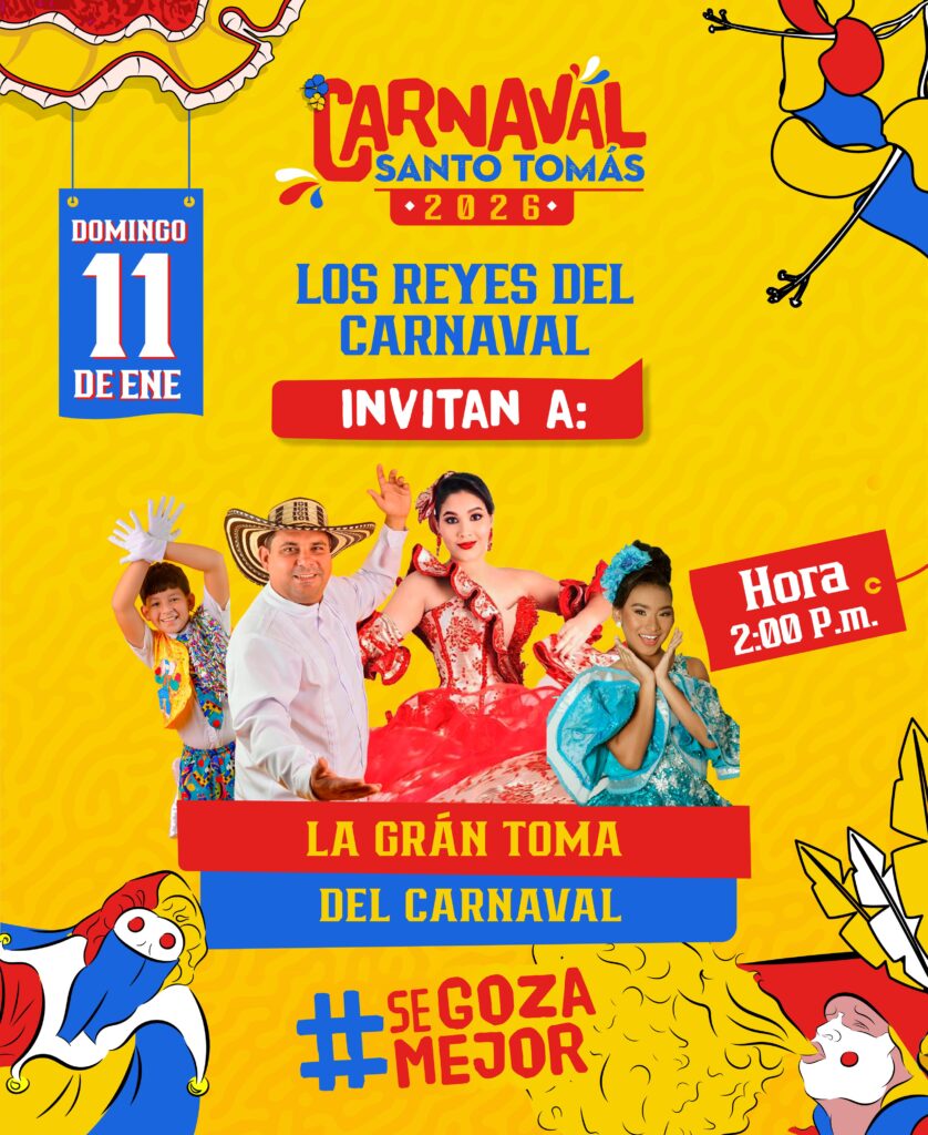 La Corporaciòn del Carnaval y de las Tradiciones Culturales de Santo Tomàs y los Reyes del Carnaval están invitando a toda la comunidad tomasina y personas de los municipios circunvecinos, de Barranquilla y otras poblaciones del Atlàntico a vivir mañana la La Gran Toma del Carnaval,