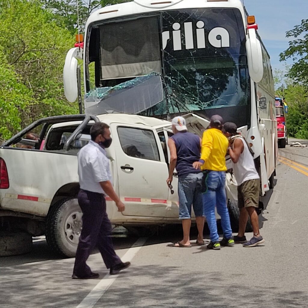 Los carros chocados son un bus de la empresa Cootransoriente de placas STS-602, uno de Brasilia y una camioneta de color blanco, donde se transportaban las tres personas fallecidas.