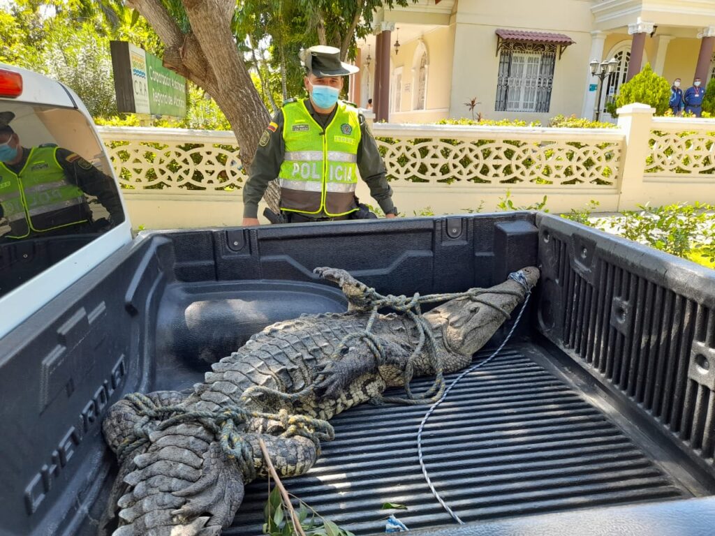 El Grupo de Protección Ambiental y Ecológica del Departamento de Policía Atlántico, en coordinación con pescadores, rescataron de las playas de Puerto Velero a un caimán aguja de por lo menos dos metros, nadando a la orilla del mar poniendo en riesgo la integridad de los bañistas.